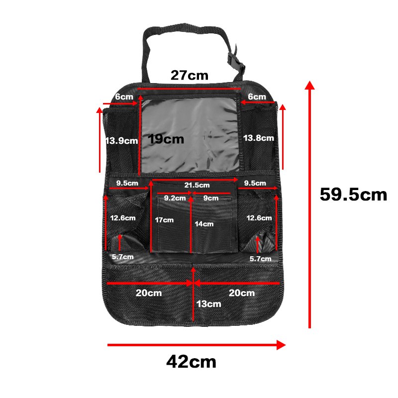 – Features multiple storage compartments, including mesh pockets to keep items in view, hold your iPad or tablet, magazines, CD, phone, bottle, drink, tissue box, umbrella, kids toys and more.